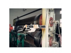 Calender roller pressing—using two rollers of concave cups and convex studs,pressing against the hot resin melt,forming uniform dimpled cores.The dimpled structure of sheet drain can help to drain rain water quickly,dramatically reducing even virtually eliminate hydrostatic pressure imposed to water proof materials,which is a good method of active water proofing by draining out water directly.
